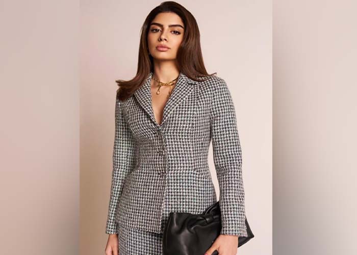 शनाया कपूर हाउंडस्टूथ-इंस्पायर्ड चेकर्ड को-ऑर्ड में हाई-फैशन सोफिस्टिकेशन दिखा रही हैं। फिटेड ब्लेज़र और मिनी स्कर्ट का कॉम्बिनेशन लग्ज़री का अहसास देता है, साथ ही इसमें एक यूथफुल एज भी है। यह लुक दिखाता है कि कैसे ट्रेडिशनल पैटर्न्स को मॉडर्न वार्डरोब के लिए रीइमैजिन किया जा सकता है।