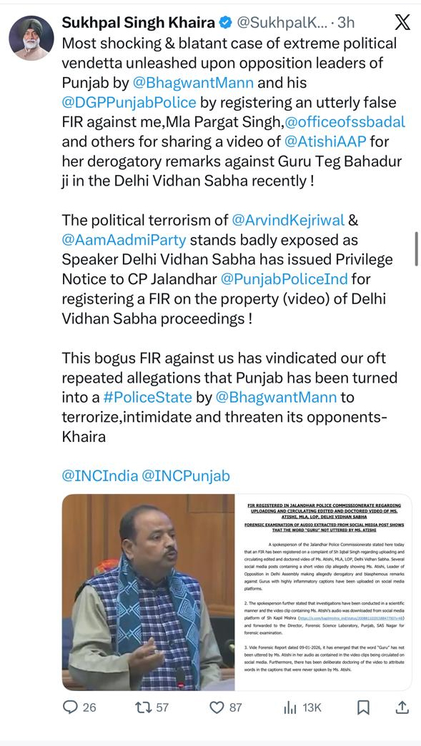 सुखपाल सिंह खैरा ने X पर लिखा: